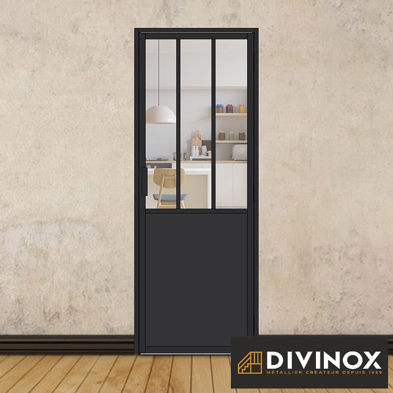 Bloc porte battante H 2040 x L 730 mm – 3 sections verticales + soubassement bois
